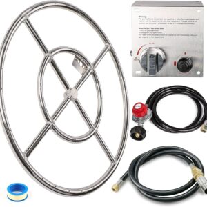 GRISUN Fire Pit Burner Ring Kit 24 Inch, Propane Firepit Kit with Hose and Upgraded Gas Control Spark Ignition Kit, DIY Round Gas Fire Pit Kit, Stainless Steel