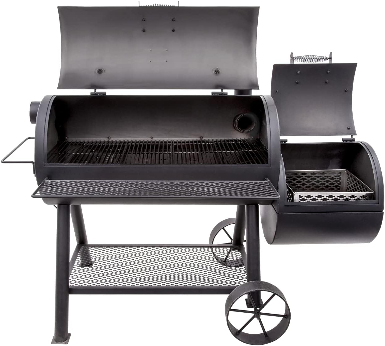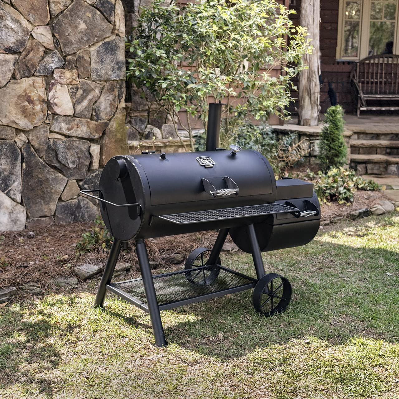 - Mobility and maintenance: Large, wagon-style wheels make it simple to reposition the smoker; a large charcoal basket and convenient firebox door speed up tending and cleanup.