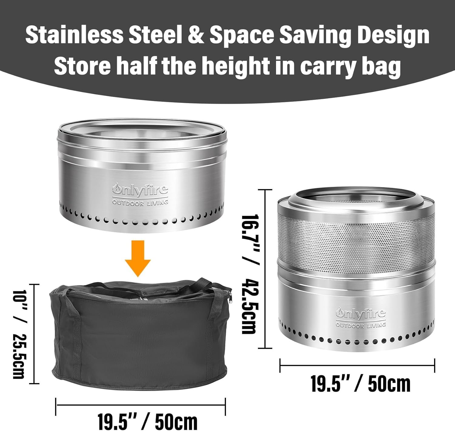 Complete your understanding of the Onlyfire Smokeless Fire Pit with a detailed breakdown of its specifications: